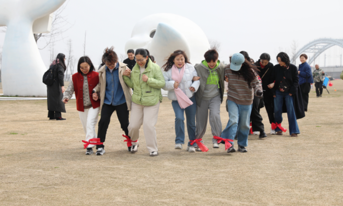 乘车前往君山江豚湾生态公园,一路暖风习习,欢声笑语。在公园草坪,大家漫步闲谈、拍照打卡、远眺赏景,好不自在。“三人四足”趣味赛随后开启,现场随机组成的五组队员迅速绑好绑腿带,整装待发。随着裁判一声哨响,她们互相扶持、齐心协力,步调一致、协同前进,场边姐妹加油助威,现场气氛热烈,欢声笑语中尽显巾帼风采。