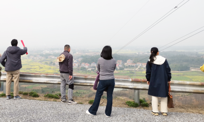 行至山顶观景台,远眺春日田园风光,但见金黄的油菜花田与错落的村落相映成趣,薄雾中的山峦如诗如画。大家在清新的空气中舒缓身心、积蓄力量。最后,全体人员在红色党建雕塑前合影留念,“以党永不变色确保红色江山永不变色”的金色大字熠熠生辉,为本次活动注入精神动力,也为登山比赛画上圆满句号。