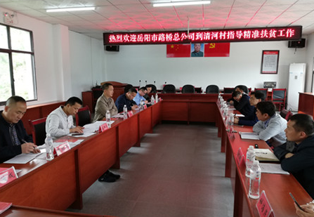任晓武书记带领帮扶干部在村部召开现场办公会,对如何开展扶贫工作提出宝贵意见建议。他强调,扶贫工作是当前各级党委政府的核心工作,也是必须完成的政治任务,岳阳路桥作为一家有担当的市属企业,定将按照中央、省、市的有关文件精神扎实完成脱贫攻坚规定任务,积极做好有关帮扶工作,帮助清河村尽快脱离贫困奔向小康。