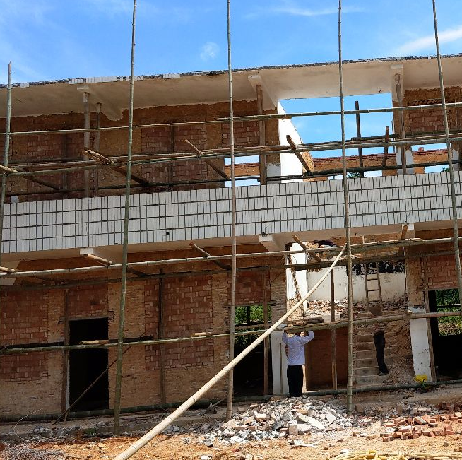 公司总经理钟勇察看村部建设时特别强调要注意安全生产,并叮嘱驻村工作队要督促施工队加快进度,规范施工,严控把控工程质量。