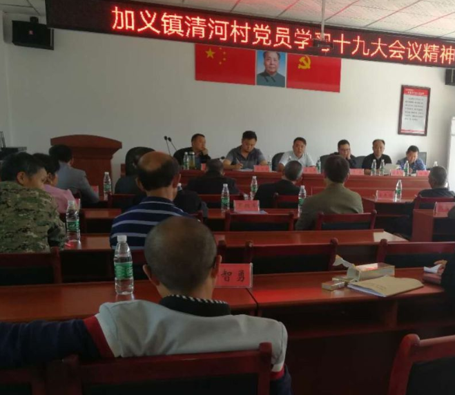 召集全村党员干部上党课、学习十九大报告精神,重温入党宣言。