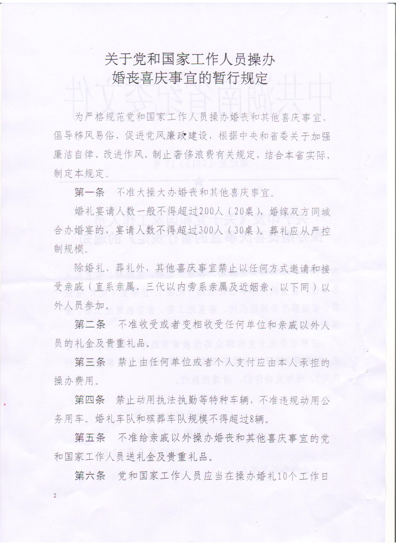 关于党和国家工作人员操办婚丧喜庆事宜的暂行规定