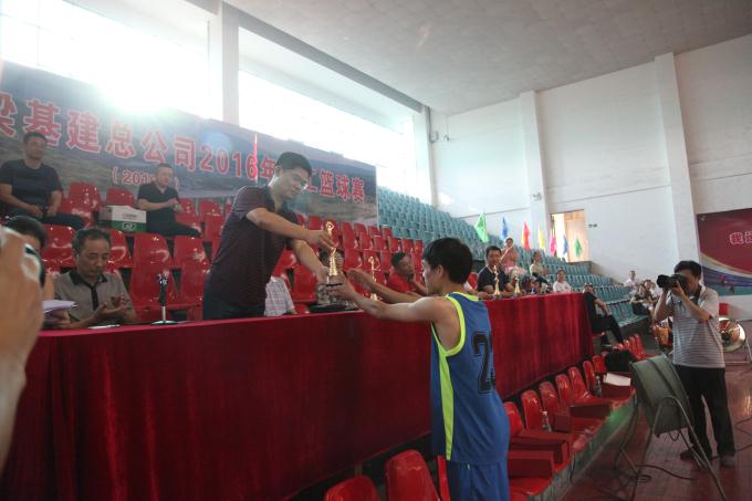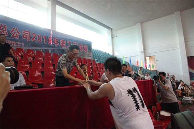7月22日,经过5天的激烈角逐,公司2016年职工篮球赛总决赛圆满落幕。总公司机关代表队获得冠军,二分公司、一分公司代表队分列亚军、季军。市公路局副局长李茂文、高建勋、吴岳新、总工程师徐军、公司总经理钟勇出席闭幕式,并为获奖代表队颁奖,公司纪委书记、工会主席、机关书记任晓武致闭幕辞并宣布篮球赛圆满闭幕,活动承办单位一分公司书记邓梦球致答谢词,公司在家党政班子成员、各分公司、部门负责人出席闭幕式,一分公司经理李兴国主持闭幕式。
