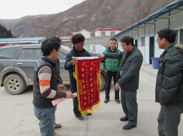 “你们的到来,给甲学乡的百姓带来了方便与温暖,你们就是我们的亲人,感谢你们!”甲学乡顿珠书记、拥清乡长带着一群村民来到到岳阳路桥四川317国道改建工程G1标项目部,代表当地送上一面“为民办事关怀备至,为民排忧情深似海”藏汉双语锦旗表示感激之情。