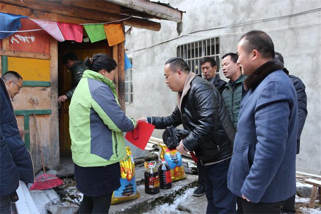 这天一大早,岳阳路桥汶马C17标项目经理钱家军、协调副经理胡德军在夹壁乡党委副书记王政、副乡长周杨及长河坝村村委书记兼村主任严江涛等人陪同下,深入长河坝村、夹壁村11户拆迁户家中进行走访慰问,并向每个拆迁户送上慰问品大米两袋、食用植物油2壶、慰问金1000元、慰问信一封,感谢他们为了汶马高速公路建设及时进行房屋搬迁,向他们这种“舍小家,顾大家”的奉献精神致以崇高的敬意,并提前向他们送上春节的祝福!(汶马C17标 董梦其)