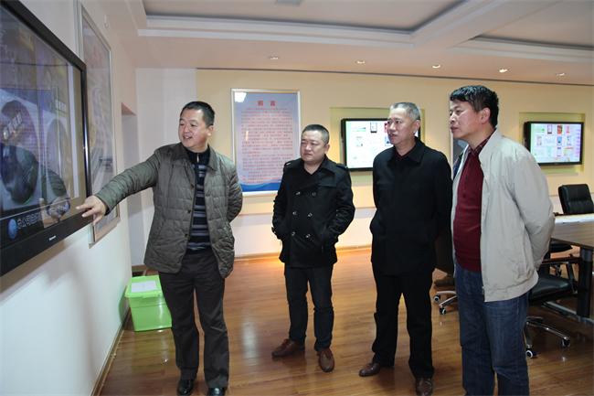 参观公司多媒体廉政文化展示厅 (从左至右依次为:公司纪委书记、工会主席任晓武、公司纪检监察室主任秦宏、公司党委书记毛响宝、市纪委纪检三室主任何选军)