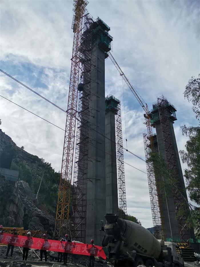 | 项目首个薄壁墩封顶