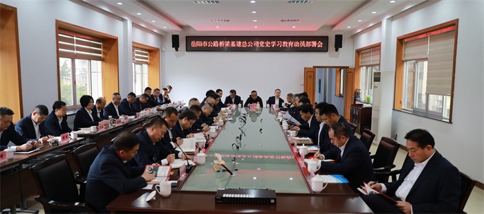 4月12日,岳阳路桥召开党史学习教育动员部署会,学习领会习近平总书记在党史学习教育动员大会上的重要讲话精神, 宣读了岳阳路桥党史学习教育领导小组成立文件,对公司党史学习教育工作进行了部署。公司党委班子成员出席会议,总公司各部门负责人、各分(子)公司支部书记(负责人)参加会议。