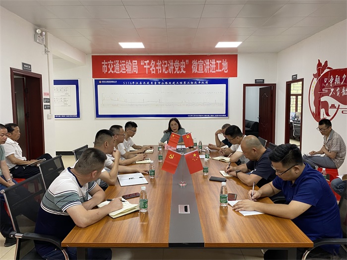 6月17日,岳阳市交通运输局岳阳市地方海事局“千名书记讲党史”微宣讲进工地暨党史学习教育“学史力行”专题研讨活动来到项目部,为火热工地送来党史知识大餐。