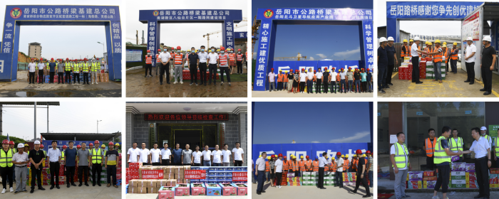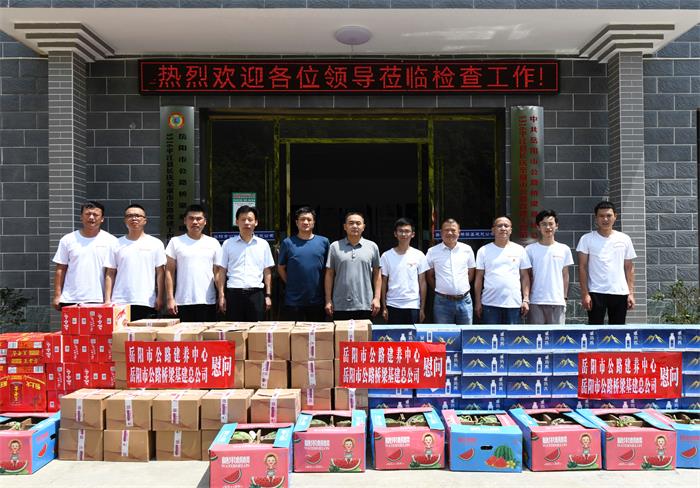 高温“烤”验下,生产不停歇。岳阳路桥项目建设者坚守岗位战高温,用辛勤汗水换来各项工作的平稳运行。近日,公司工会开展“送清凉”项目慰问活动,公司党委委员、工会主席尹光辉率队,深入岳阳市北环线、长康路立交桥等一批在建项目,向奋战在施工一线的职工送去防暑物资,带去了公司党委和“娘家人”的浓浓关爱和问候。慰问活动还特邀请了市公路建设和养护中心党委委员、副主任杨涛广,中心工会副主席杨斌参加。