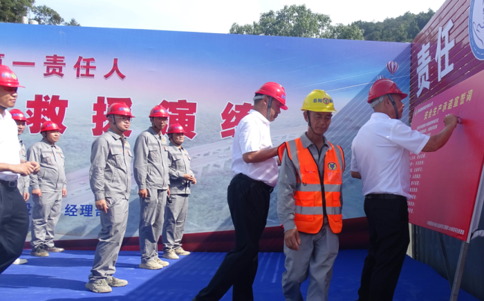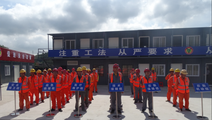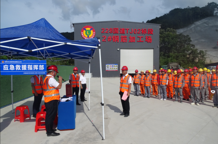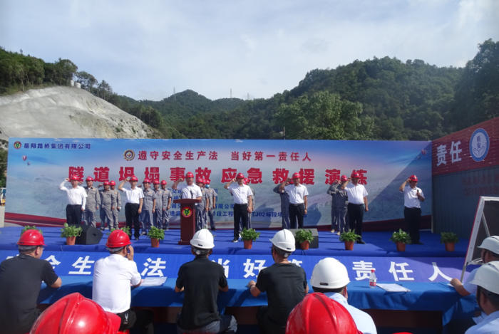 为提高228国道温岭城东至温峤段工程第TJ02标段所有参建人员的安全生产意识,掌握应急救援运行程序和方法,增强处置能力,检验隧道坍塌事故应急救援预案的可行性,6月28日下午,岳阳路桥集团228国道温岭城东至温峤段工程第TJ02标段组织开展隧道坍塌应急救援演练活动。
