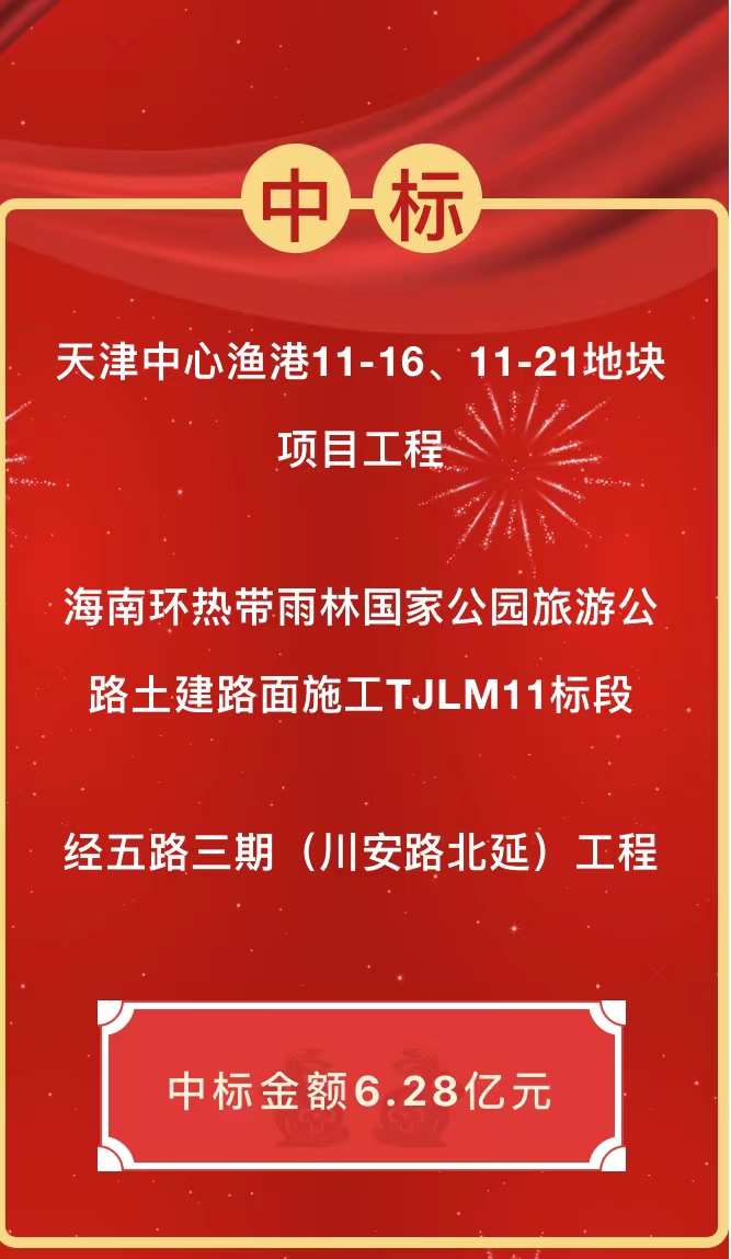 新元肇启,万象更新。岳阳路桥转型升级多元发展战略下,全方位发力拓展市场,市场经营喜迎“开门红”,在天津、海南、浙江等省份,公路、市政、房建等领域,接连传来中标喜讯,多个重点项目成功落地,进一步提升了品牌影响力!