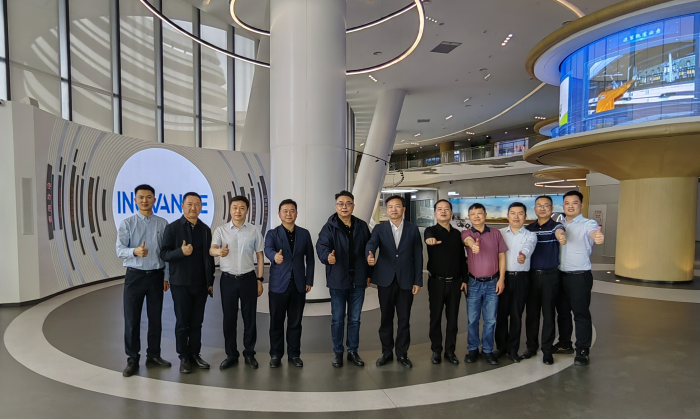 △ 在汇川技术总部,朱兴明董事长与黄河董事长一行、到访的华容县政府考察团一行合影。