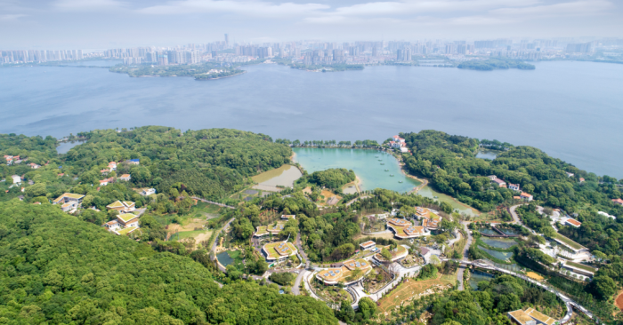 新南湖岳阳中华大熊猫苑作为国家级洞庭湖旅游度假区的重点项目,占地面积6.5平方公里,以培育大熊猫种群为主要目标,涵盖大熊猫生态苑观光、大熊猫科普、大熊猫后勤和商业大集四大功能板块。大熊猫苑根据地形地貌特点,设计了“竹”“林”“水”三个组团;与大熊猫苑比邻的商业大集则吸纳中国古建筑元素,青瓦白壁、古色古香、大气磅礴,与周围环境相得益彰。