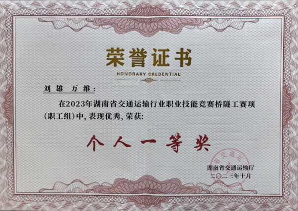 2023年湖南省交通运输行业职业技能竞赛日前圆满落幕。岳阳路桥集团选派的参赛选手刘雄、万维,凭借扎实的理论功底与实操技能,在桥隧工赛项(职工组)角逐中脱颖而出,取得“个人一等奖”与“团体二等奖”的好成绩,并将代表湖南省参加第十四届全国交通运输行业桥隧工(职工组)职业技能大赛。