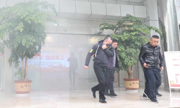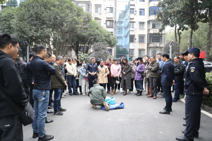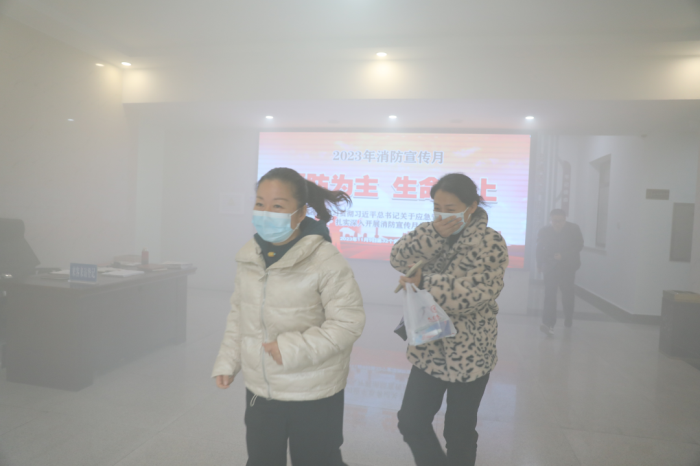 理论培训结束后,模拟办公楼发生火灾时进行人员疏散逃生,在现场负责人的指挥下,全体职工捂鼻俯身有序沿着预定紧急疏散路线快速地撤离到楼前空旷处。整个过程紧张有序、动作迅速,演练中无员工摔倒、碰撞等意外情况发生。