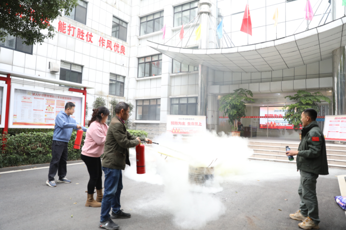 提升职工在火灾初起阶段的应急处置能力,提高大家使用灭火器的熟练程度,向教官边展示、边讲解,向大家介绍了干粉灭火器的使用方法以及灭火过程中的自我保护等注意事项,要求大家牢记灭火器“一提、二拔、三握、四压”的使用口诀。随后,大家按照讲解的动作要领和操作步骤,纷纷拿起灭火器,开展了模拟失火现场处置实战演习,对“起火点”进行扑救。
