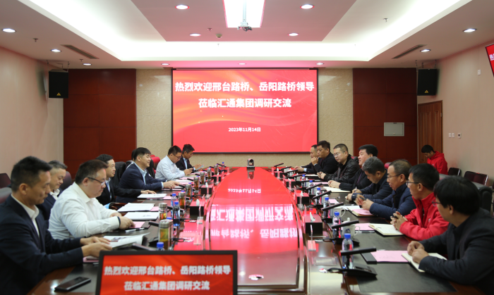 11月14日-15日,岳阳路桥集团党委书记、董事长黄河带队赴河北,会同邢台路桥建设集团党委书记、董事长苏丹,一行到访汇通建设集团股份有限公司(简称:汇通集团,股票代码:603176),汇通集团董事长张忠强、总经理赵亚尊热情接洽,三方围绕企业改革发展主题进行了深入交流探讨。