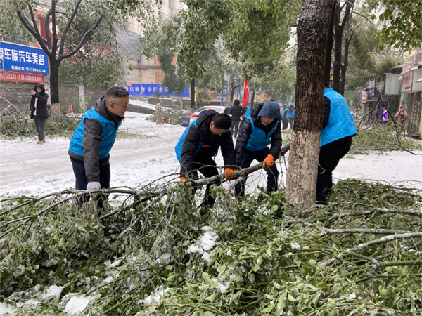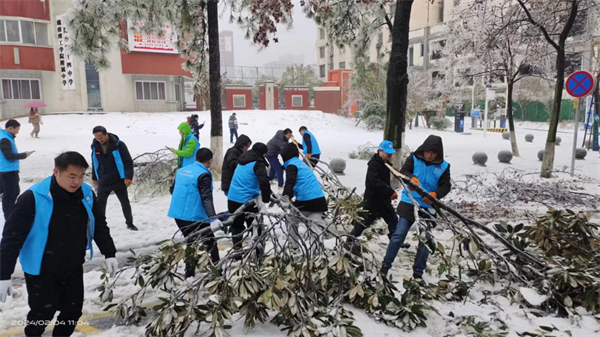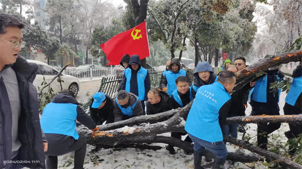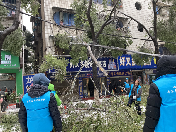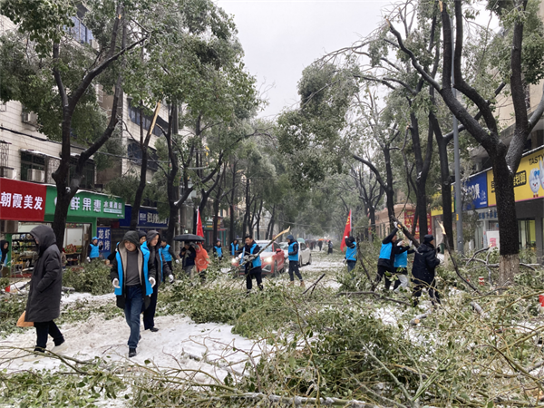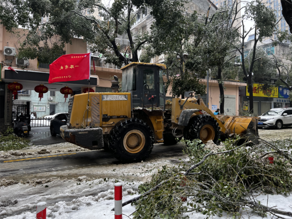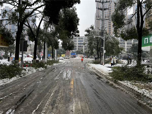 2月4日,大范围持续性雨雪冰冻天气来袭,道路积雪、结冰严重,树木大批倒伏、折枝,广大市民的正常生产生活和出行受到严重影响。