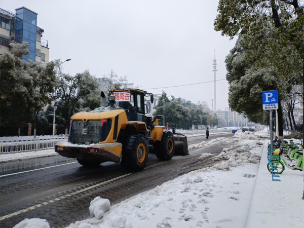 六个多小时紧张作业,从白杨坡路、青年路、岳阳大道、南湖大道再到求索路……,一步步清障突围,与广大市民一道,逐步清理出一条条“安全路”,沿街群众和过往司乘人员纷纷竖起大拇指点赞。与此同时,公司响应岳阳市铲冰除雪志愿服务倡议,在多个路段投入装载机等设备和融雪剂等物资,助力除冰雪、保畅通。
