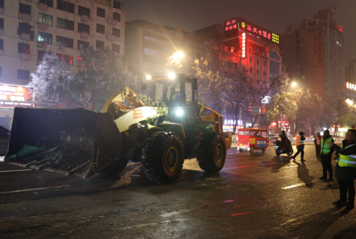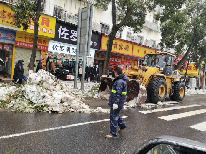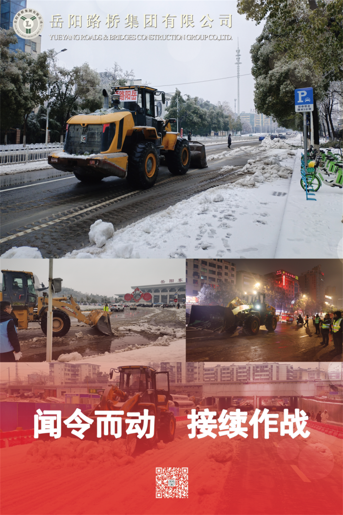 自2月4日全市遭遇持续性低温雨雪冰冻恶劣天气以来,岳阳路桥第一时间响应市委、市政府抗冰救灾部署倡议,全力投入冰雪阻击战,连日来持续投入300多名人员、三十余台机械设备和相关物资,参与了多条城市主干道的抗冰除雪清障保畅通任务,采用科学组织,多点作业,人机协同,安全有序清除道路积雪、冰块,清理压垮的断枝,与时间赛跑,努力确保广大市民生产生活尽早回归正常。