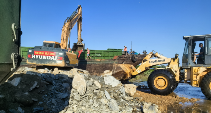 7月5日17时48分许,华容县团洲垸洞庭湖一线堤防发生决口险情,造成垸区被淹。险情发生后,岳阳路桥集团按照市防指部署要求,在北门战备渡口建设临时码头,在钱粮湖镇相关路段展开保畅作业,迅速为堤防溃口合龙材料运输打通水、陆通道。