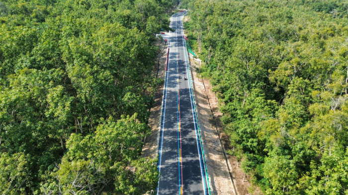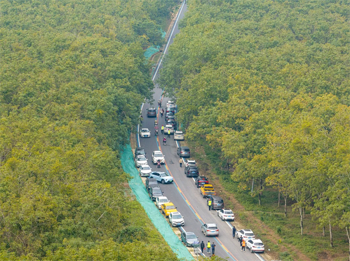 海南环热带雨林国家公园旅游公路是海南省自贸港重大项目之一,线路全长约466公里,途经陵水、保亭、三亚、乐东、东方、昌江、白沙、儋州、琼中等9个市县,有效串联起黎母山、五指山、吊罗山、尖峰岭、霸王岭等多个自然保护区,形成一条串联海南岛中南部山区美景的“项链”,并与海南环岛高速、高铁、国道组成全岛“五环”路网格局,对完善路网结构、促进全域旅游发展、带动乡村振兴具有重要意义。