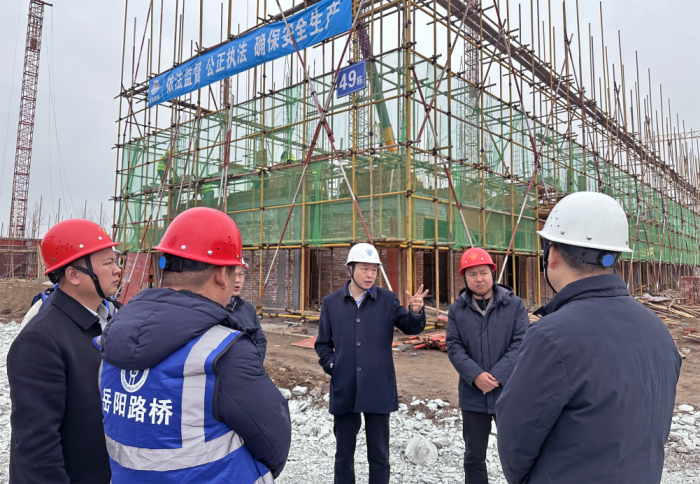 2月5日,农历正月初八,在蛇年首个工作日,岳阳路桥集团党委书记、董事长黄河深入华容县团洲垸灾后重建安置房(三期)建设、岳阳楼片区城市更新改造等项目,看望慰问一线职工,检查项目复工和安全生产情况。三分公司书记王观次、经理罗安邦,建筑工程分公司书记、经理许可和项目有关负责人陪同。
