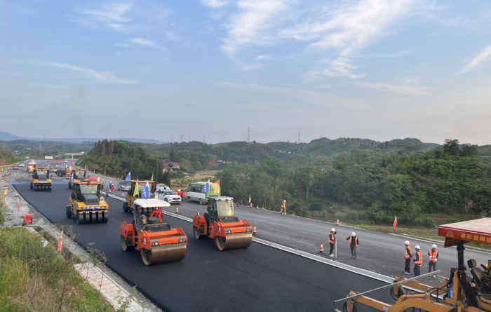 芷铜高速是湘黔两省重要交通纽带,主线全长33.48公里,桥隧比达62.23%,施工难度较大。作为路面承建单位,岳阳路桥集团组建专业团队,搭建标准化环保拌合站,建立数字化质量管控系统,在隧道摊铺中采用净味改性沥青,实现环保与品质双提升。