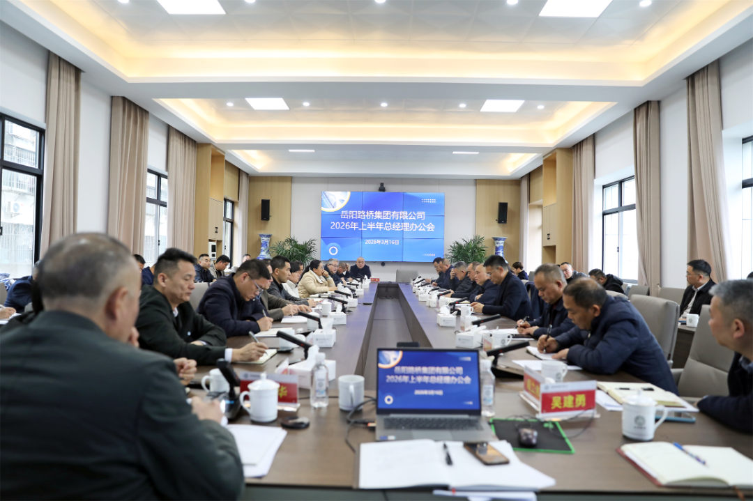 3月16日,岳阳路桥集团召开2026年上半年总经理办公会,回顾讲评公司2025年主要工作开展情况,分析研判公司发展面临的主要矛盾和突破契机,系统部署2026年重点工作任务。集团党委副书记、总经理袁雪翔作了题为《坚定信心 接续奋斗 扎实推动公司改革发展开好局起好步》的工作报告,集团各业务分管领导分别布置分管工作。会议听取了各分(子)公司、集团各部室重点难点工作推进及2026年思路计划的汇报。集团经理层成员、各部门负责人,各分(子)公司负责人参加会议;有关项目经理列席会议。