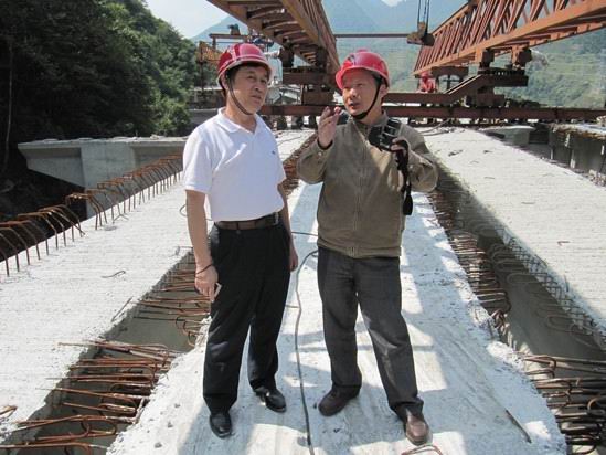 著名记者、《岳阳晚报》高级记者、编委苏世扬(左)在施工现场采访雅泸项目部陈三生。