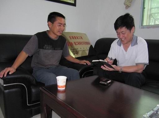 著名记者、《岳阳晚报》高级记者、编委苏世扬(右)采访思遵项目部李军。
