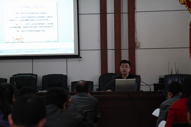 培训班邀请到了市政府文电科科长胡巍同志、市公路局办公室秘书贺小良同志担任主讲。贺小良同志就新版公文处理工作条例的变动更新部分进行了详细解读,并对市局网站信息发布流程及要求作了说明;胡科长则对公文处理工作的基本原则和要求以及公文的种类、格式、拟制、办理作了深入讲解。