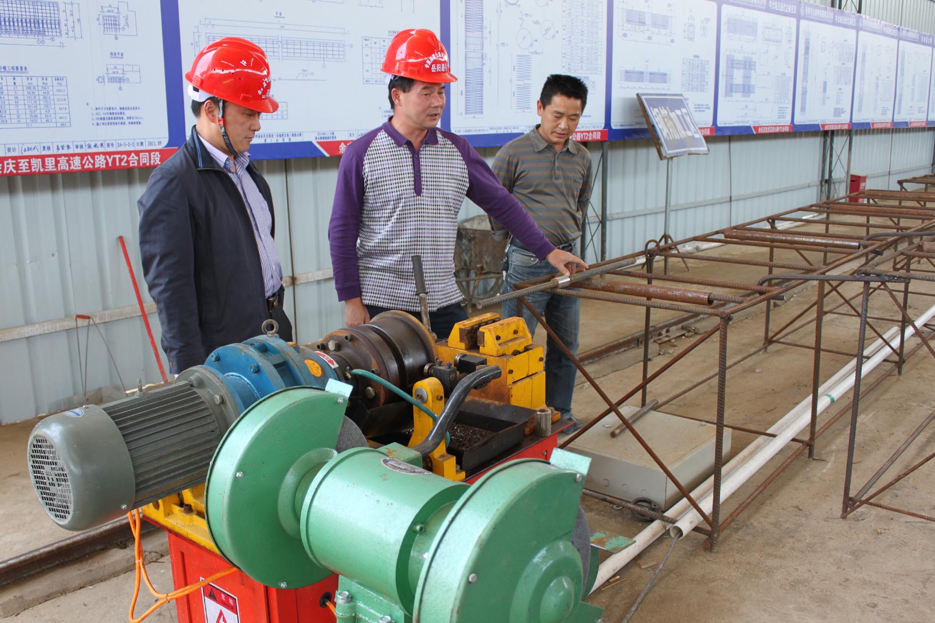 陈总经理一行先后察看了项目部驻地建设,混凝土中心拌和站及钢筋集中加工车间、五金仓库、桩基开挖及路基土石方施工现场。陈总一行所到之处,只见钢筋加工车间、堆料仓、五金仓库宽敞、明亮、大气适用;一台台混凝土集中拌和机全新整体包装,其进料仓、运输皮带上方全部用开放式雨棚罩着;整个拌和场四周用蓝白相间通透式围墙围绕着;混凝土拌和机生产全过程进行视频监控质量,电脑控制操作,一旦混凝土质量出现问题,随时可从电脑中调阅数据,查找原因及时进行调控。走进拌和站有如步入一大型生产企业车间。陈总经理在钢筋加工车间看到:一台台先进的数控钢筋弯曲机、一捆捆钢筋原材料、一叠叠加工好的钢筋整齐地摆放在防潮架上,整个钢筋加工车间规范而又标准,工人们正在紧张有序地忙碌着。当陈总经理看到五金仓库摆放着各式各样的工地上需要的五金配件、电缆线、设备后,他仔细询问项目经理钱家军:如何进行采购控制、配送管理?钱经理一一作答后,陈总欣慰地:“好!这样统一进行采购配送管理,既降低了成本,又为施工队伍提供了方便。值得在公司各项目予以推广!”随后陈总经理一行,察看了张家院1#桥桩基施工现场及土石方施工现场,只见桩基施工现场四周用蓝色彩钢瓦围挡,正在进行封闭施工,各种安全防护设施安全牢固可靠,标志标牌规范醒目;土石方施工现场一个个边坡如刀削一样平整,一级级台阶平坦顺直……机声隆隆、钻机在轰鸣,压路机、推土机、运输车辆不停地作业,工人们在全神贯注地忙碌着,个个施工队伍干劲十足,到处都是一片热火朝天忙碌景象……