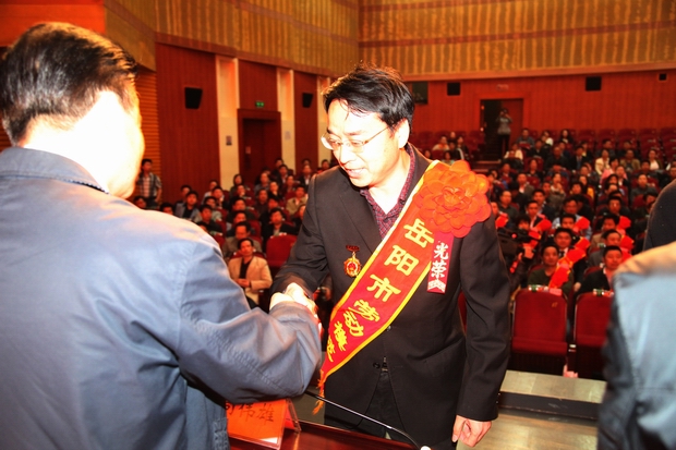 429,第五届岳阳市劳动模范表彰大会在市会展中心举行。我公司佘岳军同志当选为岳阳市劳动模范,并作为劳模代表上台接受颁奖。