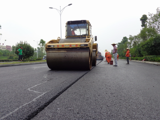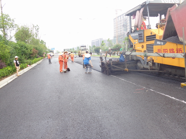 7月24日上午,在京港澳高速岳阳连接线K4+900-K5+200左侧AC-13沥青混凝土加铺罩面试验路施工现场,随着施工员一声令下,顿时机声轰鸣,试验路摊铺正式开始。摊铺、复测、胶轮光轮压路机呈梯队式跟踪碾压……水准复测、试验检测,工序一道接一道;测量员、施工员、现场监理穿梭于施工现场,整个施工现场秩序井然。经监理工程师现场检测,此次完成摊铺的300m试验路,各项指标均达到设计要求。