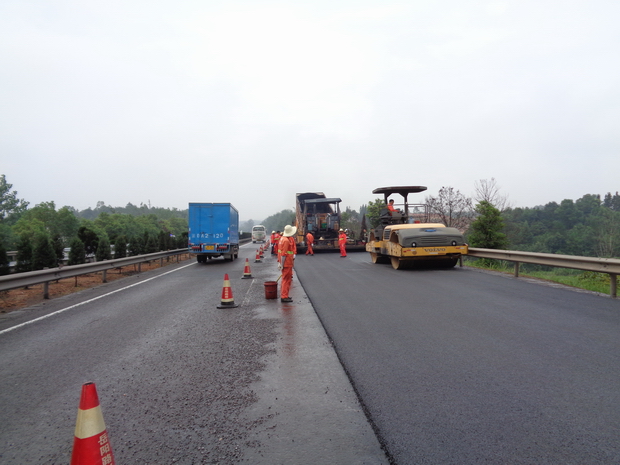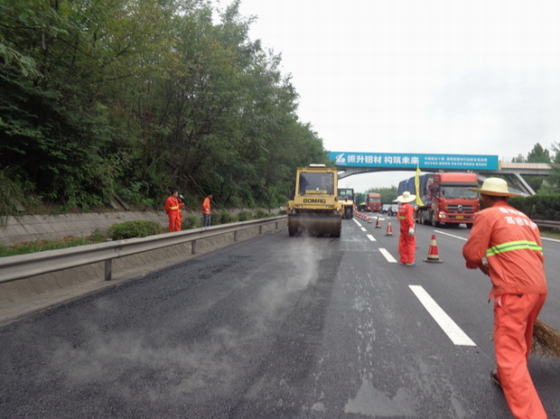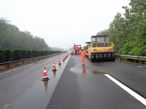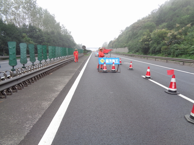 此次养护施工路段全长113Km,约132.78万㎡,设计采用4cmAC-13沥青砼罩面与2.2cm超薄罩面方式进行路面养护中修。施工采取半封闭方式进行,施工期间,加强了现场安全管理,增派了多名现场安全生产管理人员,对施工区域进行交通管制,在施工路段安放各类警示标志,积极配合高速交警、路政巡查,确保养护施工和车辆通行同步顺利进行。(办公室)
