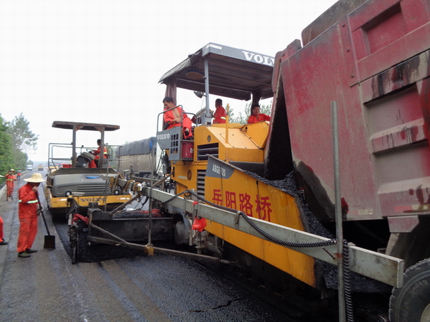 我公司承建的京港澳高速公路岳阳段路面养护施工自8月下旬启动以来,已完成全部的路面病害预处理。完成沥青摊铺22km,约33万㎡。目前正在北往南R1395+000-R1410+171、南往北L1426+000~L1436+000处摊铺施工。