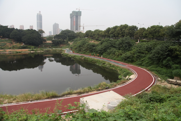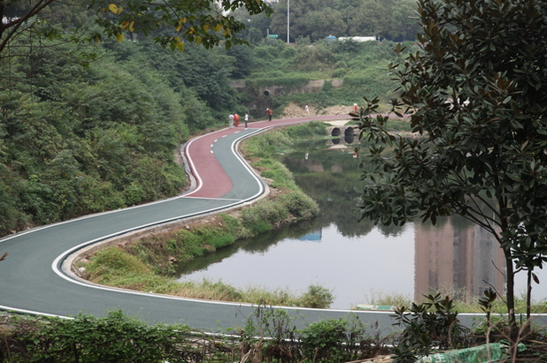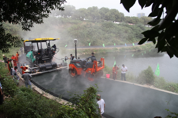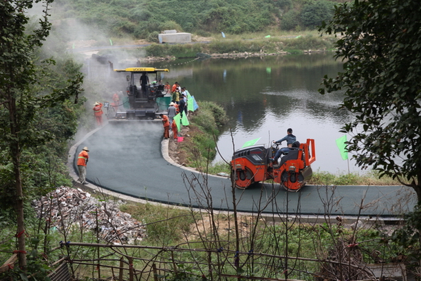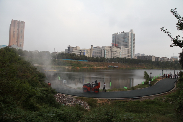 王家河环湖走廊彩色沥青路完成试验路摊铺