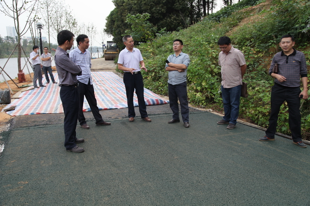 9月30日下午,我公司成功完成王家河环湖走廊彩色沥青路试验路摊铺。