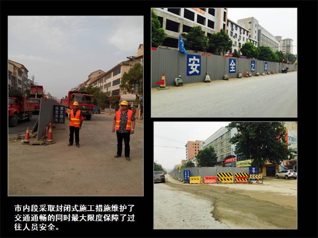 临湘市南太路改造工程项目属于市政道路工程,全长2.87km,合同金额4780万元。全线按城市主干道标准建设,设计时速为50km/h,路面宽度22m。在项目往来车流大、沿线居民多、交叉路口多、现场安全生产压力大的不利条件下,项目经理罗安邦迎难而上,成立以项目经理为组长,项目书记李光辉分管安全,安全部部长刘川直接负责的安全生产管理小组,投入专项经费120万元,15名安全员。通过组织安全生产培训教育活动、层层签订安全生产责任状、严肃安全纪律,将安全生产摆在首要位置;通过推动现场安全评比、组织安全员24小时“全覆盖、零容忍”的安全隐患排查、实行重大危险源(隐患)管理公示及日常动态监控管理、采取全线半幅道路封闭式施工等措施,将施工企业安全质量标准化工作落到实处。