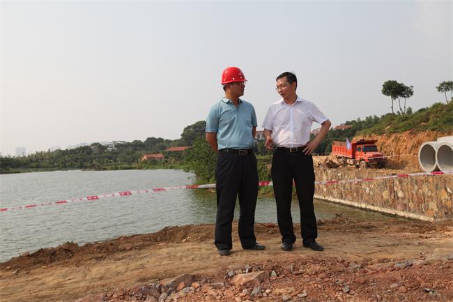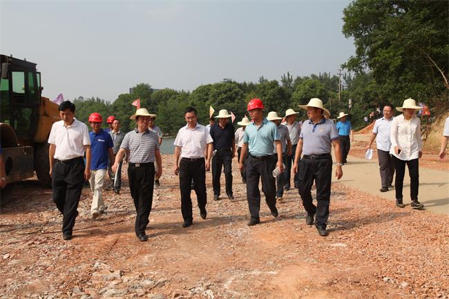 刘市长一行先后来到我标段湖南理工学院西侧三眼桥、黄梅港地段游客服务中心等施工点视察,沿建设中的环湖核心圈边走边看,向钟勇总经理仔细询问建设进展情况,对项目建设进度及安全保障措施给予了充分肯定。刘市长嘱咐钟勇,项目建设目前来势不错,大家不能有松懈情绪,要进一步加大工作力度,保证工程质量,确保项目建设又好又快。