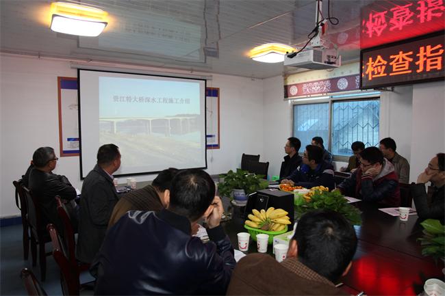 王观次就益阳资江特大桥深水基础施工、钢吊箱围堰、钢栈桥架设、挂蓝施工、成本管控等施工技术经验进行了介绍和交流。