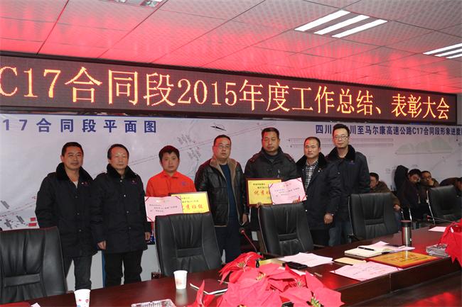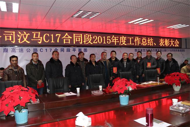 元月8 日晚,汶马C17标召开2015年度工作总结、表彰大会,项目部全体员工、各施工队负责人参加会议。