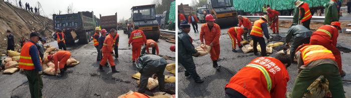 3月19日20时40分许,京港澳高速湖南大荆段发生汽车爆炸事故,致使路面损毁,交通中断。事故发生后,接到湖南高速岳阳管理处和岳阳市公路局交付的施工任务,我公司立即启动高速公路应急抢险施工预案,连夜安排施工材料,调集人员、设备赶赴事故现场。在高速交警、路政等单位协调配合下,经过20个小时的紧张施工,20日16时50分,路面修护全部完成,中断路段全面恢复通行。(办公室)
