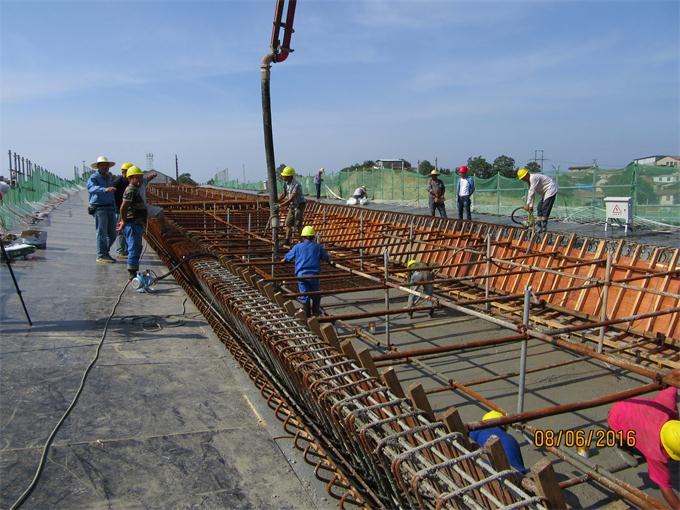 为确保此次浇筑顺利实施,项目部在施工前召开专题调度会,从施工技术交底、浇筑日期到机械设备使用与备用、人员分班、砼工作性调试、料车进出场路线、泵车摆放位置及天气、气温情况等因素进行了全盘考虑和部署,并出台了专项应急预案。根据“大流水、小平行”的施工安排,该项目近期将进行H匝道桥底板、腹板浇筑及G匝道顶板浇筑。(通讯员 李熙乾)