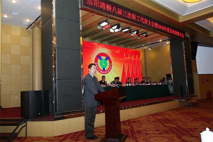 公司纪委书记、工会主席任晓武作了题为《服务大局,主动作为,为打造岳阳路桥金字招牌而奋斗》的工会工作报告,对2016年公司工会工作进行了回顾和总结,对2017年工会工作进行了全面部署,号召公司全体干部职工,在公司党委的领导下,解放思想,锐意进取,围绕中心,服务大局,为顺利完成总公司全年各项生产经营指标,打造岳阳路桥金字招牌再立新功!