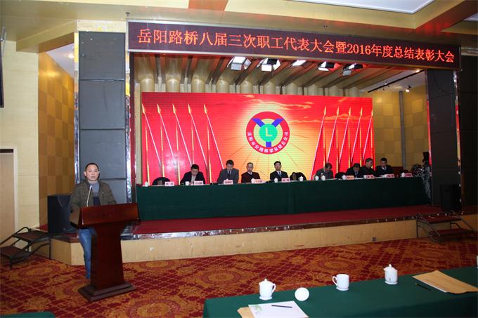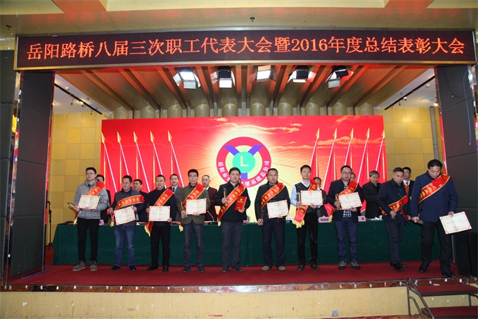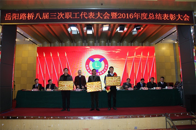2月8日上午,岳阳路桥八届三次职工代表大会暨2016年度总结表彰会顺利召开。会议回顾总结了过去一年的工作,分析研判公司当前面临的机遇与挑战,明确了2017年的总体目标和具体工作安排。市公路局党委书记、局长冯嘉皇、总工程师徐军以及相关部门负责人出席了会议。会议由公司党委书记毛响宝主持。