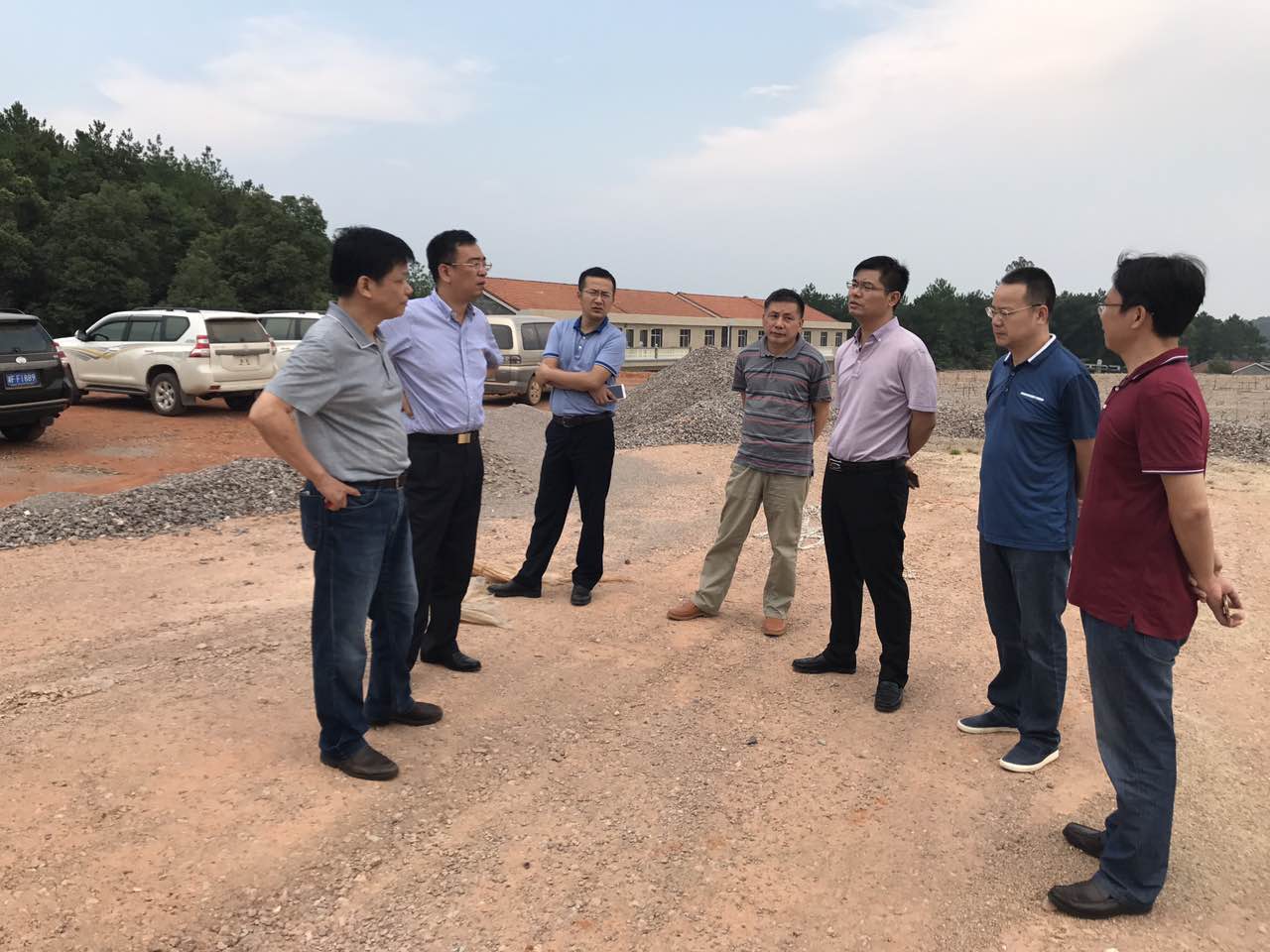 公司总经理钟勇同志(右三)向岳阳市副市长杨昆同志(左二)汇报项目建设情况