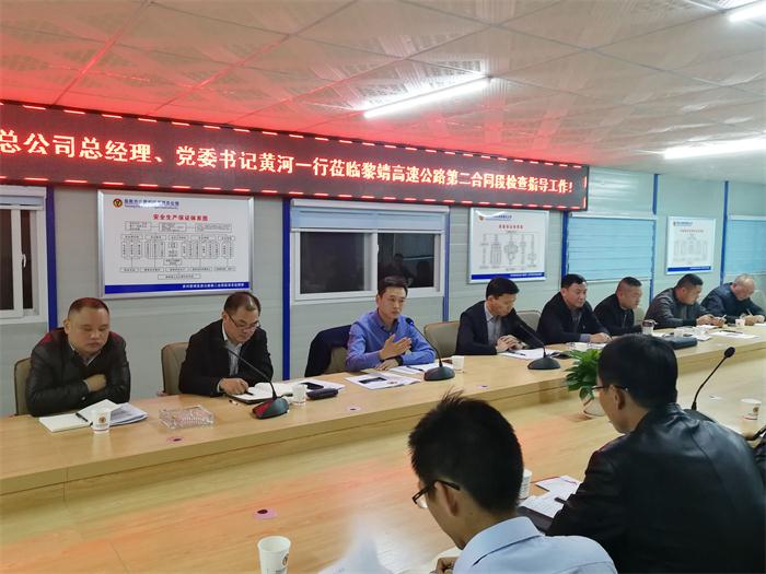 黄河一行深入黎靖项目全线进行了实地检查指导,向黎靖项目参建人员表达了亲切问候,听取了项目启动各阶段工作情况和目前施工进度、后续施工计划、主要管控措施的详细汇报,对黎靖项目各项前期手续办理、设计优化、概算批复、征地拆迁和廉政建设等工作成果特别是在当前PPP项目融资环境极为紧张的环境下,克服资金困难,积极跟进融资工作,在贵州同类型PPP项目中优先争取到国家开发银行的贷款发放给予了充分肯定。